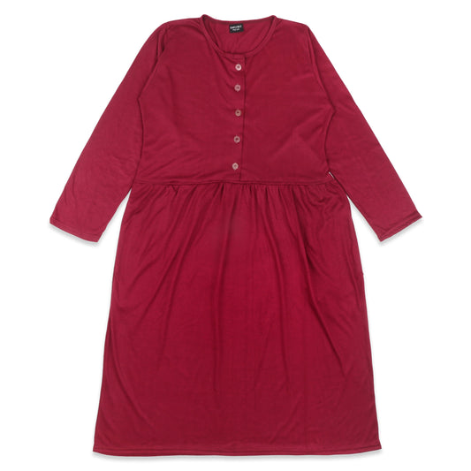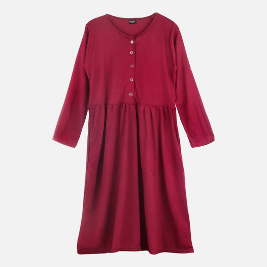 Long Maxi Dress with Front Buttons and Full Sleeve - Maroon