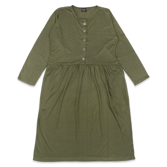 Long Maxi Dress with Front Buttons and Full Sleeve - Olive