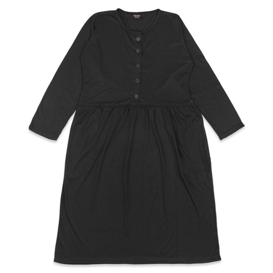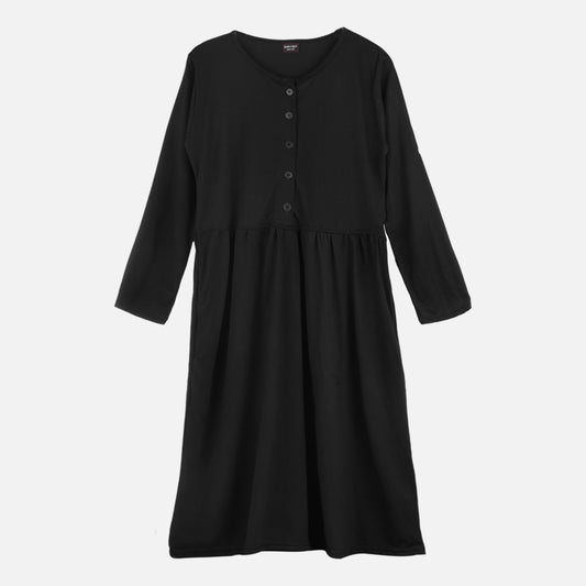 Long Maxi Dress with Front Buttons and Full Sleeve - Black