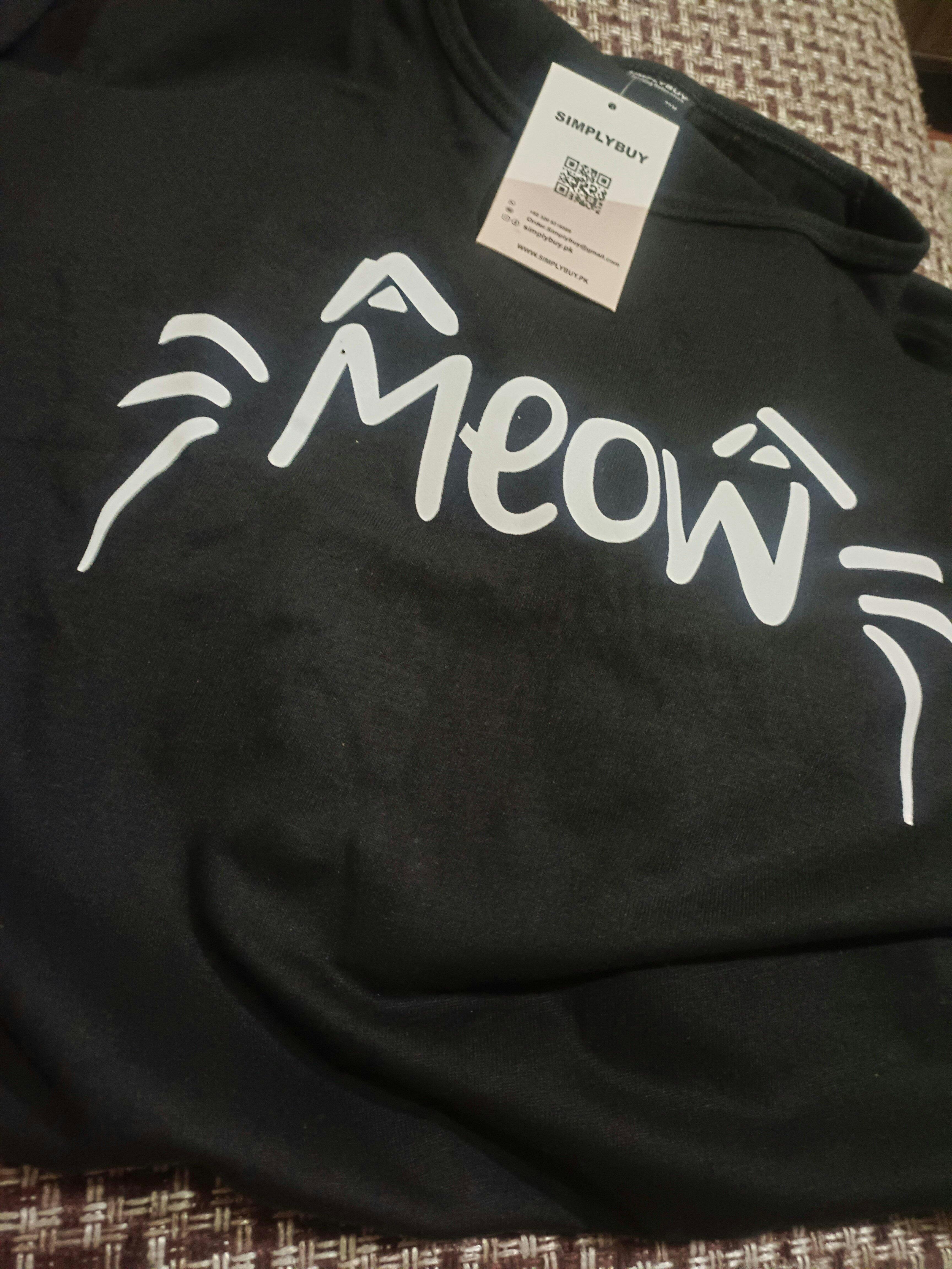 Black Meow Printed Long Tee And Cotton Loose Pant
